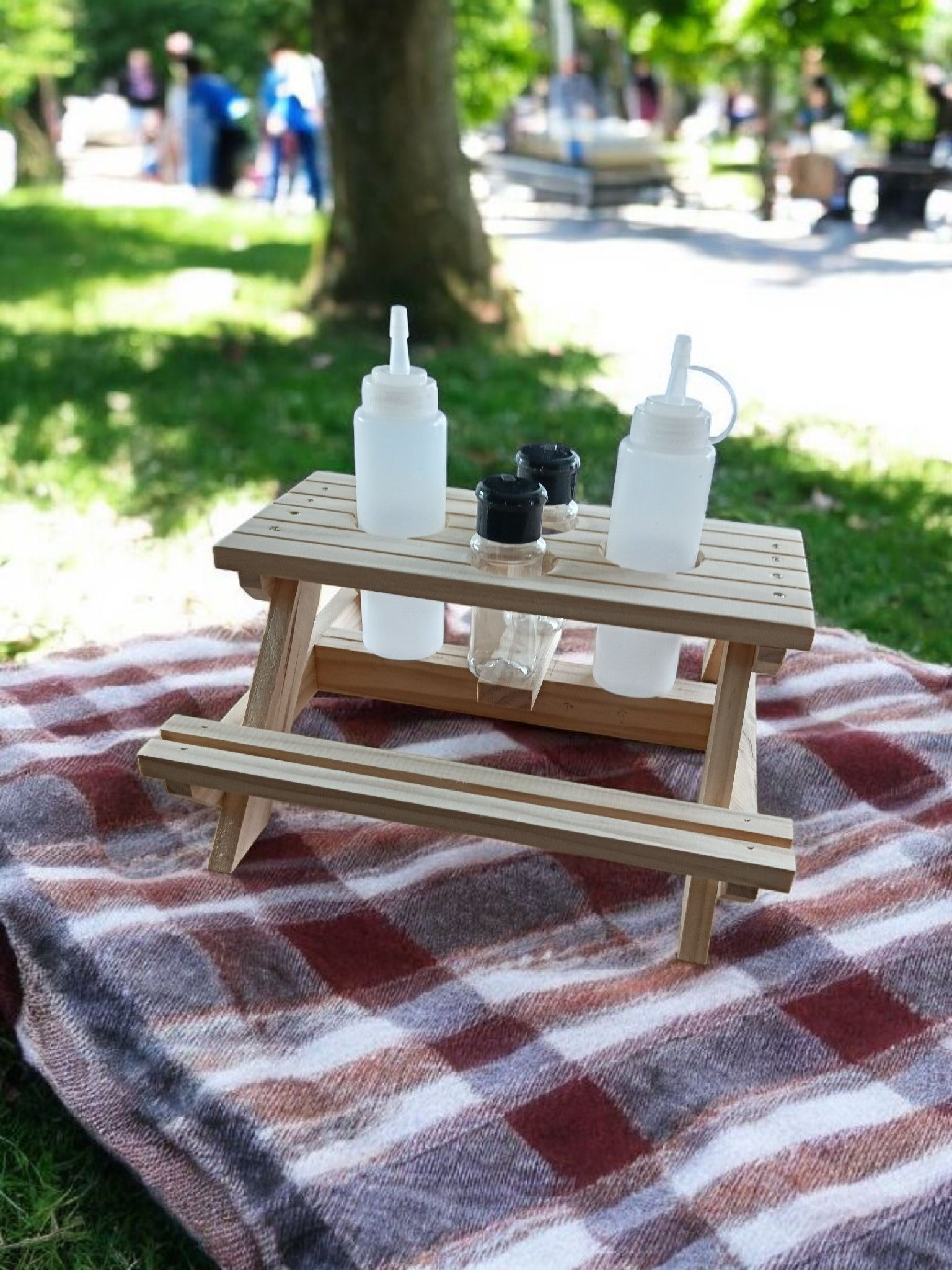 Add a splash of fun to your Summer with this handmade wooden mini BBQ table condiment holder! Perfectly sized for your table centrepiece, it keeps mustard, ketchup, salt, and pepper all in one cozy spot. Say goodbye to hunting for your favourite sauces—now they’re always close at hand, ready to kick your grill game up a notch with a touch of rustic charm.